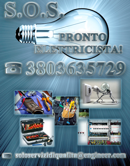- Elettricista Pronto Intervento Immediato! - SOS elettricista, Un esperto al tuo servizio! - S.O.S. ELETTRICISTA! /// Telefona al 380-3635729 per i tuoi problemi elettrici! Un tecnico esperto sarà da te nel più breve tempo possibile! - WebSite: http://www.sosprontoelettricista.altervista.org - \\\ Cell.380-3635729 \\\ Operazioni elettriche ed interventi tecnici sicuri e sopratutto Prezzi Senza Sorprese. SOS Elettricista Milano Saronno Novara Pavia e limitrofi - S.O.S. ELETTRICISTA! /// Tel. 380-3635729 - WebSite: http://www.sosprontoelettricista.altervista.org - Qualità e tempestività sempre! \\\ Cell.380-3635729 \\\ SOS Elettricista Milano Saronno Novara Pavia e limitrofi.
