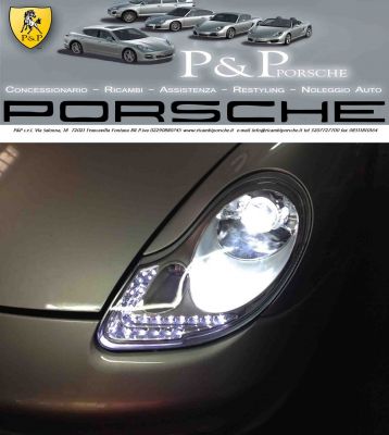 - FARI A LED PER PORSCHE CARRERA 996 BOXSTER 986 DAL 1999 AL 2004 DAL 1997 AL 20074 Prezzo Affare: 1200,00 euro ***NUOVI*** INSTALLAZIONE: Questo prodotto richiede installazione professionale. Eventuali danni durante l'installazione non sarà rimborsata Possibilità di montaggio presso nostra sede Abbiamo altri ricambi di questa auto * FIDATEVI DI UNAZIENDA SPECIALIZZATA PORSCHE * inoltre Offriamo: PEZZI USATI e NUOVI ORIGINALI e NON ORIGINALI A PREZZI SUPERSCONTATI (CARROZZERIA Usato al 50% del prezzo di listino IVATO Porsche ) (MECCANICA Usato al 35% circa del prezzo di listino IVATO Porsche ) Noi realizziamo anche il restyling completo è trasformazione delle vostre auto nei modelli attuali 2011. *** NOLEGGIO AUTO PORSCHE *** PER QUALSIASI INFORMAZIONE CHIAMA AL Tel. 320 7727700 Tel. 393 9559550 Fax. 0831 1810164 Visita il nostro sito: www.ricambiporsche.it o mandaci un e-mail: info@ricambiporsche.it