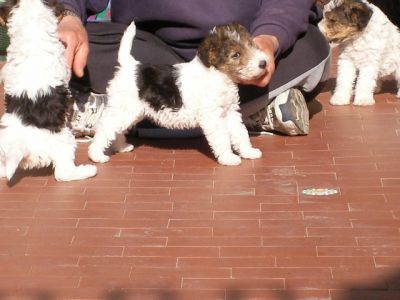- Fox Terrier pelo ruvido, cuccioli figli di campioni, genitori visibili in allevamento. Disponibilità di tre maschi e una femmina, età due mesi, sverminati, vaccinati, microchip, iscrizione anagrafe canina e microchip. Per info telefonare o via mail.