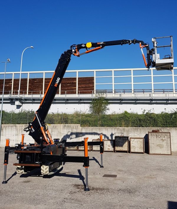 - Carro cingolato allargabile, Cingoli in gomma nera, Motoriduttori epicicloidali con freno negativo, Motore diesel Yanmar a 3 cilindri, raffreddato a liquido, Stabilizzatori a zampa regolabili, Rotazione continua con ralla e giunto rotante idraulico ed elettrico, Braccio telescopico con n°1 sfilo idraulico, Radiocomando a 6 funzioni Limitatore di carico e stabilizzazione controllato elettronicamente con display Circuito idraulico con pompe idrauliche e distributore Hawe proporzionale multifunzione compensato, Ganci di sollevamento e fissaggio per il trasporto, Jib idraulico mod. J150L con n°2 sfili idraulici ed articolazione idraulica di 195° completo di gancio. Verniciatura bracci e carro di colore nero, fregi e martinetti arancione OPTIONALS:Verricello idraulico Rotzler 1000 kg installato sotto il braccio telescopico, carrucole per tiro diretto, lunghezza fune 65 m., Sistema di carrucole per tiro in terza ,Carrucole per tiro in punta al jib , Kit per gru demontabile compreso n°4 gamb