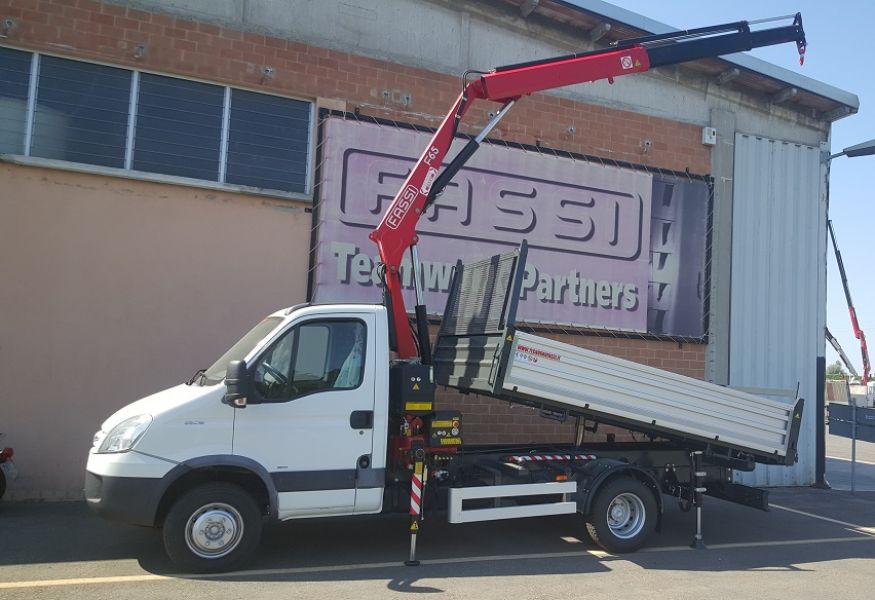 - Iveco 65C18 con gru Fassi F65A22, max. sbraccio m.7,10 con 835 kg e a m. 3,25 con 1840 kg. ribaltabile trilaterale lungo 3.600 mm con sponde in lega Tr 5, motore 3.0 16V - 4 cilindri a 6 marce 180cv - 260.000 Km passo 3750 mm, kit balestrini posteriori, alzacristalli elettrici, specchi elettrici, sedile pneumatico, panchetta biposto per terzo passeggero, portata utile 23 q.li il tutto anno 2007/2008. Altre info e schede tecniche sul sito