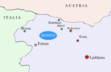 • SLOVENIA - le Alpi Giúlie: Bohinj Affittiamo l' appartamento. [ per 4-6 persone ] Gorizia (I) --> Most na Soci (SLO) -->> BOHINJ Udine --> Tarviso --> Jesenice (SLO)-->> Bled |--> BOHINJ