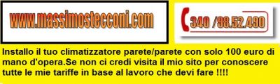 - WWW.MASSIMOSTECCONI.COM se stai cercando un installatore serio e competente che installa il tuo climatizzatore con tariffe oneste.Visita il suo portale per conoscere subito,senza perdite di tempo in telefonate, tutti i costi dell'installazione.Installatore serio e competente.Un professionista che utilizza sempre la pompa del vuoto.Se bene vuoi stare è lui che devi chimare.