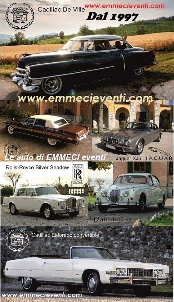 - Noleggio auto d'epoca per Matrimoni Matrimonio servizio con autista. Prestigiose Cadillac Jaguar Daimler Rolls Royce condotte con professionalità contribuiranno a dare un importante valore aggiunto al Vostro Matrimonio. Vi chiediamo di contattarci al 348 510 9 12 9 Infatti causa continui spam non rispondiamo ad alcuna email. Serietà e disponibilità. Questo annuncio è opera di agenzia regolarmente iscritta presso la Camera di Commercio. Tutte le auto proposte appartengono all'agenzia stessa e NON a privati amici conoscenti. Annuncio valido per tutte le località del Centro Nord Italia