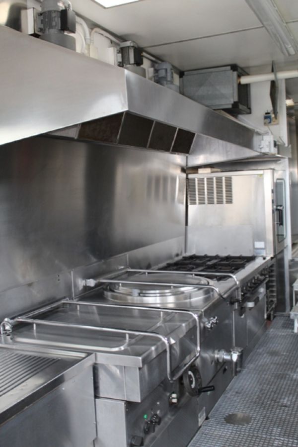 - Noleggio semirimorchio attrezzato a cucina mobile professionale ideale per cucinare nelle manifestazioni, sagre, feste e catering. La cucina è completa di tutte le attrezzature conformi alle norme di leggi vigenti con dichiarazione di conformità allegate quali friggitrice a doppio cestello, griglia a piastra, doppio lavello, scolapiatti, brasiera, cuoci pasta, piano cottura a sei fuochi, forno a gas, frigo a doppia anta, congelatore a pozzetto, cappa con filtri, banco riscaldato per sporzionamento, sterilizzatore, tavoli, banco caffè. Per info e preventivi contattare i nostri uffici allo 0744/800948 o il Sig. Gentili al 328.8535882.