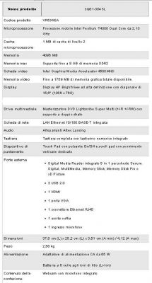 - Vendo ottimo pc portatile Compaq Presario CQ61-304SL. 2,5 anni di vita, pagato 600 €. Ecco solo alcune delle caratteristiche (quelle dettagliate le trovi su http://tinyurl.com/d3u946g): CPU Intel Pentium T4300 Dual Core da 2,10 GHz RAM 4 GB DDR2 (espandibile fino a 8) Webcam con microfono integrato Display 15,6 alta definizione Hardisk 160 GB Batteria 6 celle al litio (acceso, senza usarlo, dura 11 ore!) Memoria video Fino a 1759 MB disponibile Masterizzatore DVD Lightscribe Super Multi (+/-R +/-RW) Scheda di rete LAN Ethernet e Wi-Fi Tastiera con tastierino numerico integrato Porte esterne: lettore schedine 5 in 1 (tra cui Secure Digital); 3 USB 2.0; 1 HDMI; 1 VGA; 1 Ethernet RJ45; 1 x cuffia; 1 x microfono. Solo consegna a mano in confezione originale a Ossago Lodigiano o Lodi. Tel.380-3166863 in orario non lavorativo oppure vignettix@libero.it