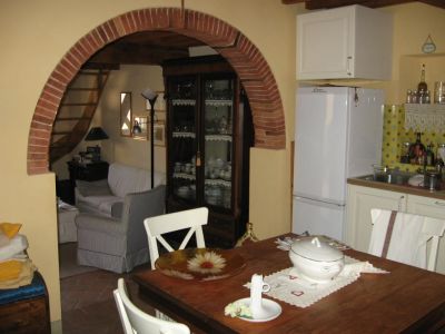 - La casa completamente ristrutturata nel 2007 è articolata su due piani: al piano inferiore cucina con lavastoviglie, lavatrice forno a microonde ed un antico focarile tipico delle case toscane dell'800; soggiorno con divano letto e poltrone. Al piano superiore il bagno e due camere: una matrimoniale ed una con due letti singoli entrambe finemente arredate con mobili di pregio e d'epoca. Soffitto a travi e travicelli, cotto nella zona giorno e parquet nella zona notte. All'esterno dispone di un giardino pensile e spazio colazione esterno antistante l'ingresso dell'abitazione attrezzato con tavolo e sedie in legno. Ottimo punto di partenza per gite ed escursioni a piedi ed in bicicletta sui monti pisani su strade panoramiche. Buona posizione anche per visitare le città vicine: Pisa, Lucca; le terme di San Giuliano e di Uliveto, il Litorale Pisano con le sue località balneari di Marina di Pisa e Tirrenia e la più nota Versilia.
