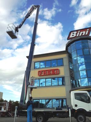- Piattaforma aerea CELA DT 21 ITALY con doppio braccio telescopico, altezza massima di lavoro mt. 21,00, sbraccio massimo mt. 9,50 con traverse estese. Comandi elettroidraulici proporzionali compensati con flow sharing, pompa d'emergenza manuale, rotazione torretta continua. Cestello standard di dimensioni 1400 x 700 x 1100 mm., presa 230 V., rotazione cestello 90°+90°, comandi a controllo elettronico, piano di calpestio in lamiera antisdrucciolevole, comando in cesto per avvisatore acustico e avvio e spegnimento motore autocarro.Teleassistenza con modem GSM,stabilizzazione automatica, Pianale con sponde in alluminio opzionale. Possibilità della versione DT24 (24 metri) Info e schede tecniche sul sito http://www.binigru.it