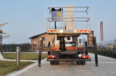- Piattaforma aerea Socage , con doppia articolazione e braccio telescopico a doppio sfilo. Cestello portapersone in alluminio, applicato all'estremità del braccio telescopico, con sistema di livellamento automatico completamente idraulico, tubazioni interne. Installabile su autocarro da 6Ton. di peso complessivo, passo 3350 mm, con n.4 stabilizzatori idraulici estensibili manuali. CARATTERISTICHE TECNICHE: H. max di lavoro m 28,00; H piano di calpestio m 26,00; sbraccio max di lavoro m 16; rotazione torretta continua; portata Max Cestello kg 225; dimensioni cestello mm 1800x700x1000, comandi elettroidraulici, presa Elettrica 230 V nel Cesto, rotazione Cestello 90° + 90°, dispositivo anticollisione cabina-cesto,boccole autolubrificanti. Info e schede tecniche sul sito