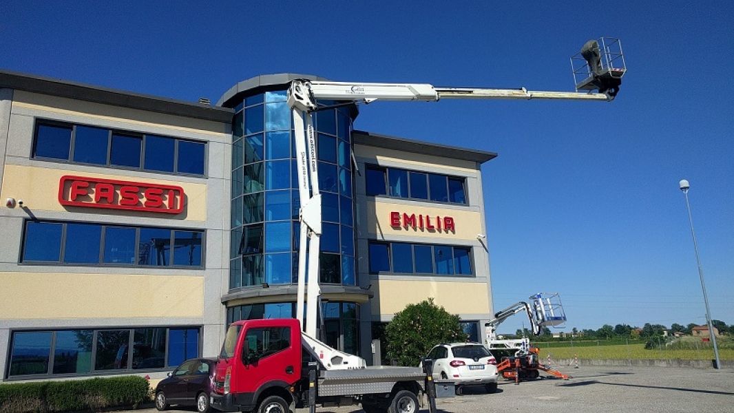 - Piattaforma aerea Oil & Steel mod. 2010 Compact, anno 2009, km 20.000, 4200 ore di lavoro completa di: Doppio pantografo + braccio telescopico con uno sfilo, movimentazione pantografo con bielle, rotazione torretta 360°, comandi idraulici proporzionali da terra e dal cestello, avviamento/arresto motore da cestello, pianale in alluminio antiscivolo, cestello in alluminio, rotazione del cestello 90° destra + 90° sinistra. Altezza di lavoro: 20 mt. Altezza piano di calpestio:18 mt, sbraccio: 10 mt. Portata (comprese due persone): 220 kg. Dimensioni cestello: 1400x700x1100 mm. Motore elettrico 220 Volts per lavori in interni. Ottime condizioni generali, il tutto su Nissan Cabstar, collaudi Mctc e Ausl regolari Altre info e schede tecniche sul sito