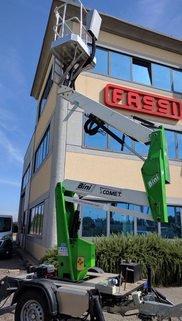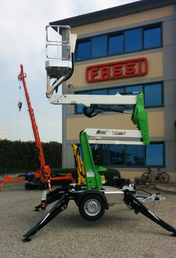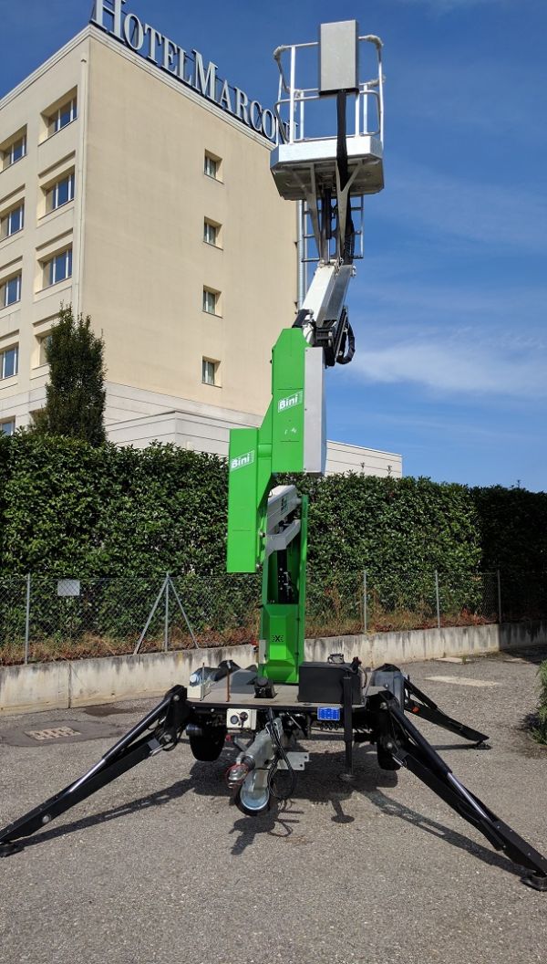 - Modello X trailer, altezza di lavoro 12 metri, immatricolazione gennaio 2016, sbraccio 4,5 metri con 200 kg, portata in navicella 200kg con navicella in tubolare dim 1000x700x1100, impianto corrente 220V in navicella, motore ausiliario benzina, Impianto manovre piattaforma totalmente idraulico, articolazione singola, appendice ad un asse, traino con patente B purché non superi i 35q di ptt massa trainante + trailer (11 q.li) completa dei seguenti otionals: Traslazione indipendente tramite due motori idraulici posizionati sulle gomme, motore elettrico 220 Volts per lavori in interno. 79 ore di lavoro VERA OCCASIONE!!!! Altre info e schede tecniche sul sito www.binigru.it