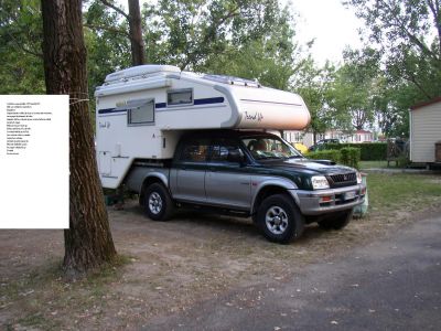 - Pick Up Mitsubishi L200 anno 1999 – circa 300.000 Km sempre tagliandato e collaudato in ottime condizioni. Comprensivo di HARD TOP. Cellula abitativa anno 2005 – Trend Up in ottime condizioni e con diversi optionals aggiunti. In visione zona UDINE Per maggiori informazioni e-mail a: paesaniezio@libero.it OPTIONALS 1. Serbatoio acqua potabile capacità l 105 (in luogo di 50) 2. Oblò con ventilatore/aspiratore 3. Bagagliera (1) e barre porta-tutto 4. Agganciamento cellula/pickup con sistema autocentrante 5. Ancoraggio direttamente al telaio 6. Impianto elettrico sul pickup per ricarica della batteria della cellula durante il viaggio 7. Sospensioni ad aria aggiuntive sul pickup 8. Finitura antisdrucciolo sul tetto cellula 9. Impianto gas con seconda bombola (5 Kg) di riserva 10. Luce esterna a basso consumo 11. Aspiratore in bagno 12. Armadio in punta mansarda 13. Mensola ribaltabile (cucina) 14. Passaggio cellula/pickup (dal tetto pickup) 15. Veranda 16. Doccia esterna