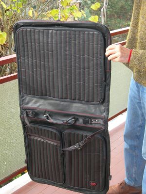 • Portabiti da viaggio Ghepard, simil-pelle nera , ripiegabile con manico, tre tasche e cerniera, due portaabiti interni e gancio per appendere vendesi euro 30 . tel 347 7185317