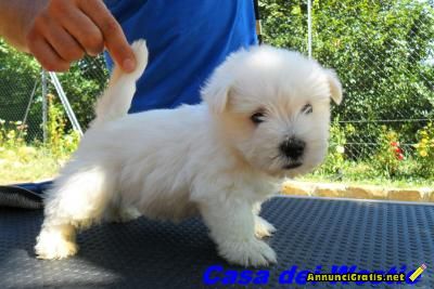 - Vendesi meravigliosi cuccioli di West Highland White Terrier provenienti da ottimi esemplari - genitori selezionati con ottima linea di sangue. I cuccioli vengono ceduti con microcip inserito, vaccinazioni e sverminazioni effettuate . Ovviamente hanno il pedigree. Richiesta Loi in corso al momento della consegna. Cuccioli già disponibili. Genitori visibili e allevati nel calore familiare. Per tutte le informazioni che desiderate potete visionare il nostro modesto sito www.westie.fc.it. e la pagina facebook “ CASA DEI WESTIE”. L’AMORE PER TUTTI I CANI CI SPINGE AD ESSERE TASSATIVAMENTI CONTRARI ALLE IMPORTAZIONI ILLEGALI DI CUCCIOLI DAI PAESI DELL’EST . - Evitate acquisti di cani senza aver prima visionato l’ allevamento e visto mamma e cuccioli e diffidate da chi non consegna il pedigree asserendo che i prezzi sono notevolmente piu’ alti e che trattasi di documento solo per expo…. Chiamateci al 340 3273995 per ogni delucidazione.