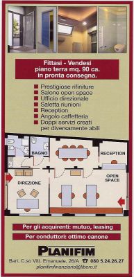 - Prestigioso studio professionale in viale Einaudi, piano strada, rifinitissimo, doppi servizi, parcheggio, termocondizionato. Superficie mq 90 circa. C.E.G;