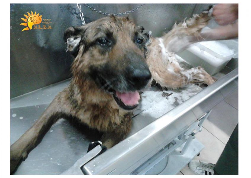 - RAUL - MASCHIO - TAGLIA GRANDE - NATO 2004 Lui è Raul, affettuosamente soprannominato Nonnino. E' stato prelevato da una situazione di abbandono e malgoverno, legato a catena corta ed esposto alle intemperie senza un tetto x ripararsi ma solo una cuccia che, ad ogni pioggia, puntualmente si allagava. Dopo intervento dell'Ass.ne A.L.B.A. di Napoli, supportata da Guardie Ecozoofile, si è provveduto a prelevare il cane dalla situazione non più sostenibile e trovargli un posto migliore in attesa di sistemazione. Ha effettuato visita specialistica veterinaria che ha evidenziato stato di generale malnutrizione, otite cronica e inizio di lacerazione alle zame posteriori, prescrivendogli antibiotico, una serie di integratori alimentari e mangime specifico. Tutto sommato, l'emocromo non è cattivo e, soprattutto, è risultato LEISHMANIA NEGATIVO. Purtroppo, Raul ha problemi al treno posteriore che non gli permettono la stazione eretta ma ancora non possiamo attribuirli ad una causa specifica poichè, essendo piuttosto debole fisicamente, non può ancora sostenere la sedazione necessaria per sottoporlo ad indagini diagnostiche. Raul soffre molto della sua situazione fisica, del non poter agevolmente spostarsi e, educatamente, chiama quando deve fare i bisogni e fa capire che vuole essere accompagnato sull'erba per non sporcare il suo box. Per questo motivo, abbiamo deciso di acquistare per lui un carrellino così da fargli sopportare meglio la situazione e permettergli di essere autonomo negli spostamenti. Dopo i primi giorni in cui era molto spaesato, Raul ha mostrato il suo carattere meraviglioso: giocherellone, amante delle coccole e delle palline, starebbe tutto il giorno al sole a giocarci! Cerchiamo per lui adozione del cuore, una famiglia vera che sappia fargli dimenticare il suo passato e possa accompagnarlo degnamente nella vita che gli resta. cERCHIAMO ANCHE STALLO CASALINGO IN ATTESA DI ADOZIONE. Attualmente, Raul si trova in Campania ma si affida in Campania e Centro NOrd Italia previo colloqui e visita preaffido. Info: Sonia 380.2697122 Laura 334. 1753230 adozioni@associazionealba.org Se volete aiutarci, servono cibo iperproteico, integratori vitaminici(tipo BeTotal), traverse
