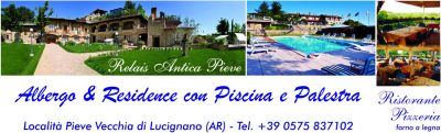 - Situato alle pendici del colle sul quale sorge lo splendido borgo medievale di Lucignano, considerato la perla della Valdichiana, il Relais Antica Pieve vi offre l'opportunità di godervi una vacanza in Toscana. Il Relais Antica Pieve dispone di appartamenti, di varie dimensioni sviluppati su uno o due livelli, con 2,4,6,7 posti letto (letti o divani letto) ai quali si accede da una strada riservata esclusivamente agli ospiti della struttura. Realizzati in tipico stile toscano con la massima cura dei dettagli, tutti gli appartamenti sono dotati di cucina abitabile completa di frigorifero, stoviglie e utensili, ampio soggiorno con divani letto utilizzabili all’occorrenza e TV a schermo piatto con ricezione di canali satellitari e lettore DVD. Le camere da letto, con letti in ferro battuto, dispongono tutte di servizi privati (in alcuni appartamenti anche doppi) con vasca o doccia idromassaggio. Per tutti gli appartamenti sono inoltre disponibili: - Riscaldamento autonomo; - Phon; - Lavatrice; - Ferro e Tavola da stiro; - Stendi biancheria; - Biancheria da letto; - Biancheria da bagno; - Biancheria da cucina; - Tv satellitare; - Lettore dvd; Il Relais Antica Pieve dispone anche di Piscina estiva, Palestra e Parcheggio privato; inoltre, grazie al Ristorante Antica Pieve adiacente al Relais possiamo offrire su richiesta ai nostri Ospiti i seguenti servizi: - Prima Colazione con dolci di nostra produzione; - Mezza Pensione (prima colazione e cena incluso acqua e vino della casa); - Pensione Completa (prima colazione, pranzo e cena incluso acqua e vino della casa); La struttura ‚ inoltre convenzionata con un rinomato centro termale famoso per i trattamenti termali curativi, estetici e di benessere psico-fisico, che dista pochissimi minuti da Lucignano. Tutto questo per dare l'opportunità ai nostri ospiti di vivere la propria vacanza in Toscana in piena tranquillità e autonomia. Fate del Relais Antica Pieve il Vostro punto di riferimento per visitare una delle più belle zone della Toscana, ricca di storia e natura. RELAIS ANTICA PIEVE Albergo & Residence – Piscina Palestra e Ristorante Fraz. Pieve Vecchia 52046 Lucignano (Arezzo) Valdichiana - Toscana - Italia Tel : + 39 0575 837102 Sito Web: www.relaisanticapieve.com e-mail: info@relaisanticapieve.com