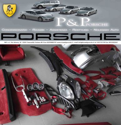 - OFFRIAMO: ricambi porsche boxster 987 Prezzo AFFARE: richiedere prezzi Abbiamo altri ricambi di questa auto * FIDATEVI DI UN’AZIENDA SPECIALIZZATA PORSCHE * inoltre Offriamo: PEZZI USATI e NUOVI ORIGINALI e NON ORIGINALI A PREZZI SUPERSCONTATI CARROZZERIA MECCANICA: Parafanghi Paraurti Cofani Radiatori Fanali Airbag Portiere Cristalli Cerchi AVANTRENO RETROTRENO PONTI ( meccanica anteriore posteriore ) bracci trapezi scatola guida supporti ruota freni ammortizzatori Scarichi Cambi Ricambi Motore ecc... (CARROZZERIA Usato al 50% del prezzo di listino IVATO Porsche ) (MECCANICA Usato al 35% circa del prezzo di listino IVATO Porsche ) Noi realizziamo anche il restyling completo è trasformazione delle vostre auto nei modelli attuali 2011. *** NOLEGGIO AUTO PORSCHE *** PER QUALSIASI INFORMAZIONE CHIAMA AL Tel. 320 7727700 Tel. 393 9559550 Fax. 0831 1810164 visita il nostro sito: www.ricambiporsche.it o mandaci un e-mail: info@ricambiporsche.it