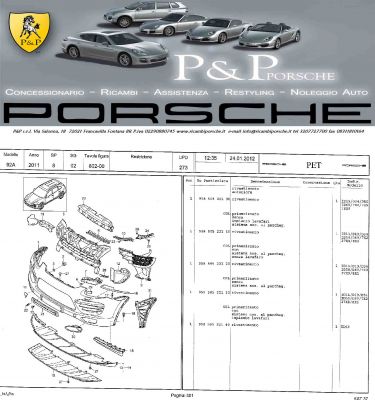 - RICAMBI PORSCHE CAYENNE 958 DAL 2011 AD OGGI Tramite il nostro servizio ricambi potrete trovare tutti i ricambi originali Porsche nuovi ed usati, oltre ad altri accessori per personalizzare la vostra Porsche. Telefonando al numero 3939559550 o inviando una e-mail a info@ricambiporsche.it ,potrete conoscere in tempo reale l’esatta disponibilità dei ricambi richiesti. Spedizione immediata Consegna 24H RICAMBI: USATI e NUOVI - ORIGINALI A PREZZI SUPERSCONTATI CARROZZERIA/MECCANICA: Parafanghi – Paraurti – Cofani – Radiatori – Fanali - Airbag-Portiere - Cristalli - Cerchi avantreno - retrotreno (ponti) (meccanica anteriore posteriore ) (CARROZZERIA Usato al 50% del prezzo di listino IVATO Porsche ) (MECCANICA Usato al 35%circa del prezzo di listino IVATO Porsche ) Vendita auto PORSCHE già disponibili in casa. PER QUALSIASI INFORMAZIONE CHIAMA AL 393 9559550 / 320 7727700 O mandaci un e-mail : INFO@RICAMBIPORSCHE.IT Visita il nostro sito: www.porschericambi.it