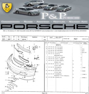 - RICAMBI PORSCHE CAYMAN 987 DAL 2005 AL 2012 Tramite il nostro servizio ricambi potrete trovare tutti i ricambi originali Porsche nuovi ed usati, oltre ad altri accessori per personalizzare la vostra Porsche. Telefonando al numero 3939559550 o inviando una e-mail a info@ricambiporsche.it ,potrete conoscere in tempo reale l’esatta disponibilità dei ricambi richiesti. Spedizione immediata Consegna 24H (Prima di contattarci,bisogna avere a disposizione il numero di telaio della vostra auto, così potremmo darvi un servizio migliore) (CARROZZERIA Usato al 50% del prezzo di listino IVATO Porsche ) (MECCANICA Usato al 35%circa del prezzo di listino IVATO Porsche ) Noi realizziamo anche il restyling completo è trasformazione delle vostre auto nei modelli attuali 2012. PER QUALSIASI INFORMAZIONE CHIAMA AL 393 9559550 / 320 7727700 O mandaci un e-mail : INFO@RICAMBIPORSCHE.IT Visita il nostro sito: www.porschericambi.it