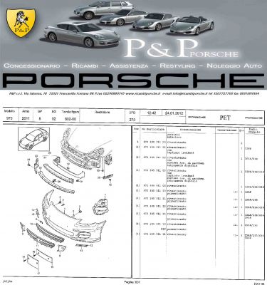 - RICAMBI PORSCHE PANAMERA DAL 2010 AD OGGI Tramite il nostro servizio ricambi potrete trovare tutti i ricambi originali Porsche nuovi ed usati, oltre ad altri accessori per personalizzare la vostra Porsche. Telefonando al numero 3939559550 o inviando una e-mail a info@ricambiporsche.it ,potrete conoscere in tempo reale l’esatta disponibilità dei ricambi richiesti. Spedizione immediata Consegna 24H RICAMBI: USATI e NUOVI - ORIGINALI A PREZZI SUPERSCONTATI CARROZZERIA/MECCANICA: (CARROZZERIA Usato al 50% del prezzo di listino IVATO Porsche ) (MECCANICA Usato al 35%circa del prezzo di listino IVATO Porsche ) Noi realizziamo anche il restyling completo è trasformazione delle vostre auto nei modelli attuali 2012. Vendita auto PORSCHE già disponibili in casa. ritiriamo auto incidentate Abbiamo anche il servizio di noleggio Porsche a breve a lungo termine PER QUALSIASI INFORMAZIONE CHIAMA AL 393 9559550 / 320 7727700 O mandaci un e-mail Visita il nostro: www.ricambiporsche.it