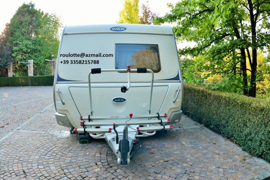 • Roulotte Caravan Wilk Vida 700 DM Usato Euro 28500 Milano Roulotte Caravan Wilk Vida 700 DM con 3800 km dell'anno 2013, unico proprietario. Usato SOLO da 3 persone per un unico viaggio da Milano fino Santiago de Compostela (Spagna), con la durata di 5 settimane. Pranzi e cene sempre in veranda. Accessori: - 6 portabici modell Pro Bike 300 - Cavo 220, tubo acqua, tavolino 160 - Pronto-letto matrimoniale e letti a castello - Serbatoio h2o supplementare, serbatoio acqua 100 lt, portagomma diritto filettato 3/8' X 12 - Veranda fiamma f45 4,5 m - Condizionatore FJ2200 STD - Specchi per macchina - Pannello solare - Kit pannello TV 100 Watt - Pannello controllo tensione batteria - Caricabatteria - Parabola 680 con decoder Sky - Parabola satellitare ASR 680 - TV 16 pollici - Mouver TE R - Doppio asse con pneumatici 185/65 R14 (85M) - Lunghezza 8942 m - Larghezza 2500 m Informazioni: roulotte@azmail.it +39 3358215788