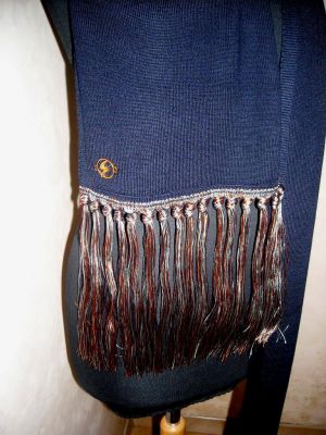 - SCIARPA FIRMATA GATTINONI COLORE BLU SCURO CON FRANGIE MULTICOLOR. VENDO A EURO 100,00 PER INFO : davidefrassinetti@libero.it