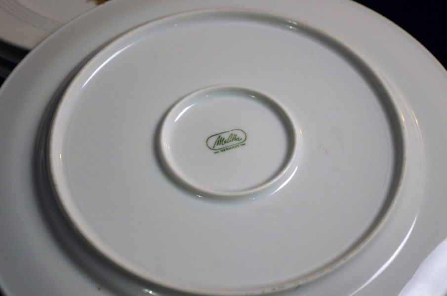 • Servizio di piatti in ceramica con scene di da caccia degli anni '70 da 6 made in germany, comprensivo di piatti fondi, piani e due vassoi da portata.