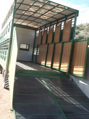 - NISSAN L 80 trasporto animali/ /cavalli patente C, declassato a q.74.90.per viaggiare sempre. q.28 di portata 6 cilindri freni ad aria cabina ribaltabile 5 mt di zona animali pareti in alluminio. (bella massiccia anche per bovini) fondo in alluminio zigrinato a vasca con serbatoio e scarico per urine, tappetti in gomma da un cm ( asportabile.) porta dx per ispezione. rampa posteriore con 4 molle ,paratie per salita animali in compensato marino ( OKUMé) 5 separè (smontabili) per 6 posti ,comodi per cavalli, altezza ok anche per secondo piano. per capreni e ovini. valuto permute per parte dell'importo. se interessati invio altre foto. possibilità anche di vendita separata solo furgonatura o solo motrice. tel 3475793961.