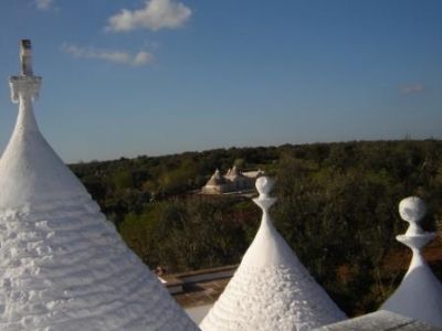 - Una raccolta casetta dei tempi passati arredata in maniera semplice e contadina; si compone di una sala (il cono grande), due camere da letto ( i due coni più piccoli), un angolo cottura e un bagno; all'esterno ampi spazi e antico forno. I trulli risalgono all'inizio del 900, ben tenuti da sempre e periodicamente imbiancati a calce come usano i nostri contadini, conservano la struttura originale senza turistici rimaneggiamenti. L'abitazione è circondata da tre ettari di tipica campagna altosalentina e si localizza in una contrada tranquilla e rilassante dove si respirano atmosfere d'altri tempi; dista sei chilometri da Ceglie Messapica e tredici da Ostuni. Giugno e Settembre 300 a settimana - Luglio 350 a settimana - Agosto 450 a settimana. Prenota Prima (entro Maggio): 10% di sconto