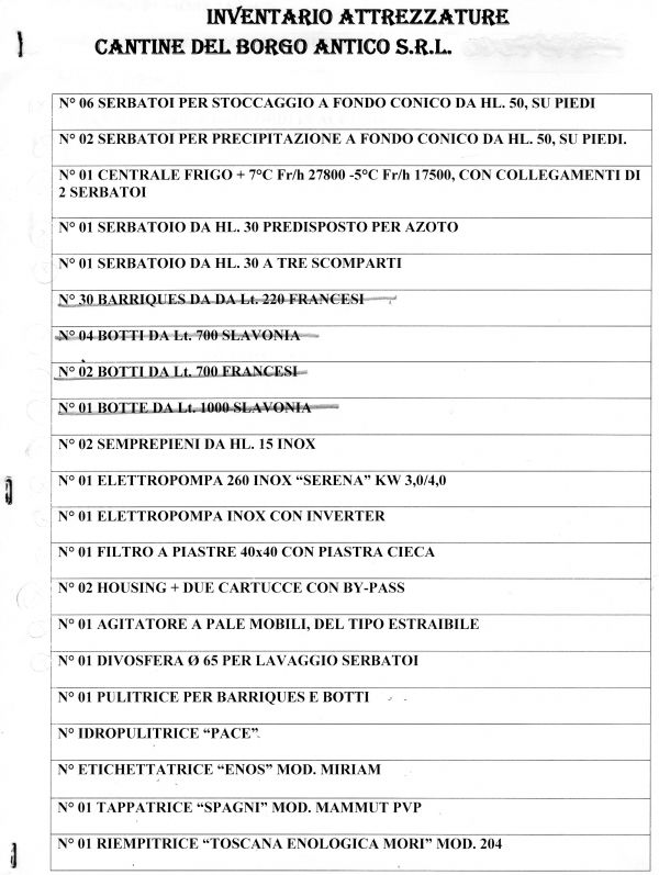 Vendita di Azienda Vitivinicola CANTINE DEL BORGO ANTICO.