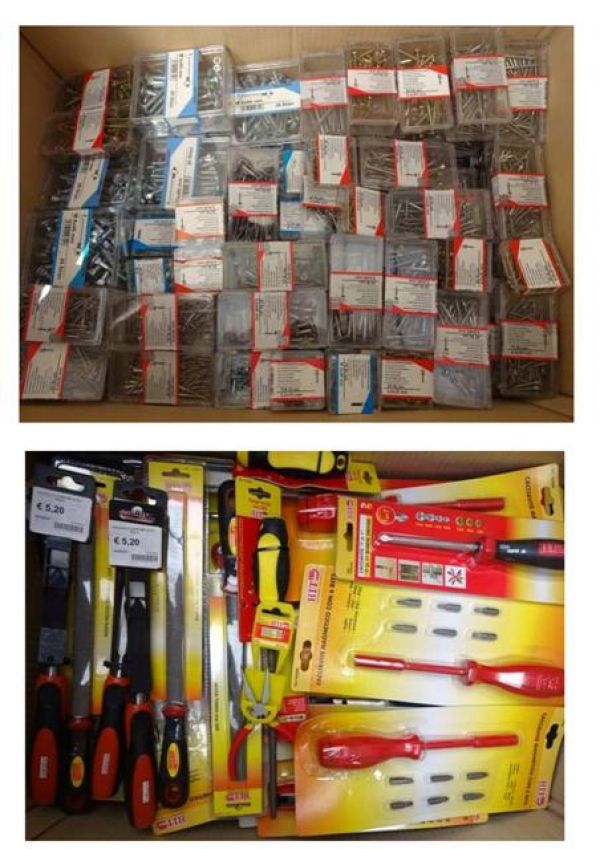 - Stock ferramenta mista: vasto assortimento di ferramenta varia: utensileria manuale, ferramenta per edilizia, maniglie, viteria e bulloneria in inox e zincata in blister, ecc. La merce è disposta in 30 bancali, disponibile e visibile nei nostri magazzini a Terni previo appuntamento. Per info su prezzo ed altro contattare: BOBBI LUCA 328 8535881 o 0744 800948