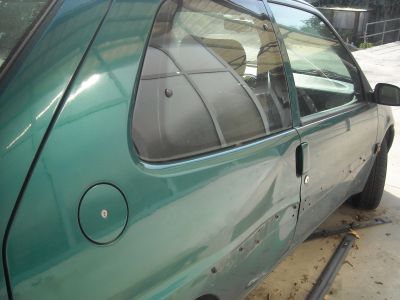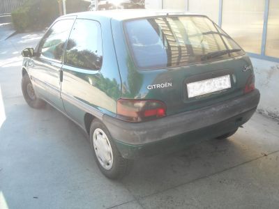 • citroen Saxo benzina cilindrata 1360 colore verde, tre porte, gomme nuove, ammaccatura fianco destro, 86.000 Km. Funzionante.