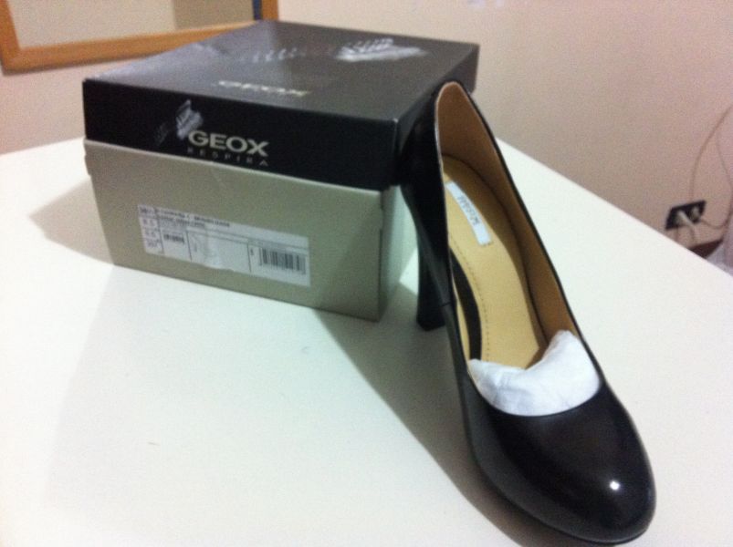 - Vendo un paio di decollete Geox originali, in pelle, tacco 11, plateau 2 cm, modello Cleopatra, colore nero, numero 38,5, MAI UTILIZZATE, con scatola. Le ho acquistate online su Privalia ma ho sbagliato di poco il numero. Purtroppo, essendo fuori per motivi di lavoro, ho provato le scarpe quando ormai era troppo tardi per chiederne il reso ed il rimborso. Il prezzo che chiedo è inferiore a quello sostenuto per l'acquisto su Privalia. Per quanto riguarda ritiro e modalità di pagamento: - in caso di pagamento tramite bonifico la spedizione sarà effettuata entro 2/3 giorni dalla ricezione del pagamento con Paccocelere (da considerare 12euro circa di spese di spedizione); - in caso di pagamento in contanti è prevista la consegna diretta dell'oggetto in luogo da concordare (in base alla dislocazione dell'acquirente), ovviamente per chi è su Roma.
