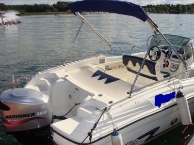 - Per passaggio a categoria superiore SVENDO Ranieri Rancraft 20.20 Millennum con Mariner Optimax 150cv con 200 ore di moto SOLO LAGO. Bussola, strumentazione motore completa con smartcraft, VHF, GPS+ECO Garmin 178Color, autoradio CD MP3 con USB, elica inox, cuscineria completa, salpancora elettrico Quick, telo copriscafo completo, telo copriconsolle, telo copertura alla fonda e telo copertura motore, tendalino originale con tiranti inox a scomparsa, luci pozzetto a led luce calda, luci di via, luci lenticolari di ricerca a prua, tavolo a prua, serbatoio inox da 150lt, doccia con autoclave e serbatoio acqua da 60lt, scaletta di poppa, batteria avviamento motore, batteria servizi nautica, doppio stacca batteria, separallelatore elettronico per ricaricare entrambe le batterie automaticamente, pompa di sentina automatica con galleggiante a mercurio, invaso in acciaio con ruote costruito appositamente per questa barca. Per ulteriori foto o informazioni, contattatemi. Il tutto a 18.000 euro trattabili