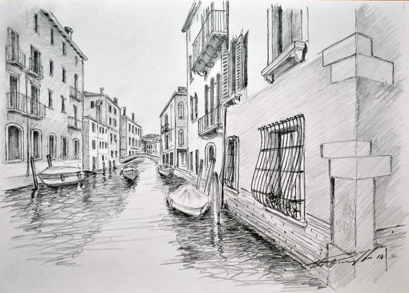 - Disegni a matita di Venezia su cartoncino formato A4 del Pittore Elio Picariello info: artepicariello@libero.it