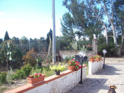 - Vendesi villa unifamiliare circondata da 6.000 metri di terreno irriguo, piantumato e recintato. 4 camere, doppi servizi, salone, cucina, ampie verande. riscaldamento autonomo a gas con serbatoio interrato, depositi acqua, posizione incantevole, vicina alla superstrada per Cagliari o per il mare a quindici minuti.