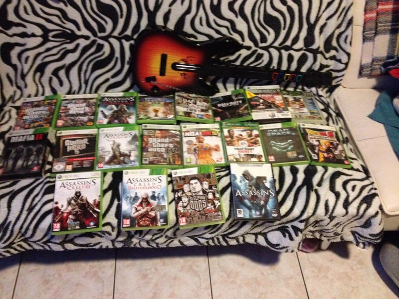 - Vendo: -Xbox 360 -chiavetta usb 2.0 da 16 gb -2 joypad/joystick Inoltre vendo anche questi giochi anche separatamente: Gta 4:20 Gta epidoses from liberty city:30 Gta 5:40 Assassin's creed 2:16 Assassin's creed brotherhood:20 Assassin's creed revelation:26 Assassin's creed 3:29 Sleepings dogs:20 Mafia 2 limite d edition:30 Guitar hero 5 con chitarra:45 Dead space2:20 Call of duty black ops:27 FIFA 11:5 Mondiali fifa Sudafrica:4 Drago ball z burstlimit:15 NBA 2k10:5 Fight night round 4:8 Se li prendete tutti insieme faccio uno sconto di 15 e ragalo cofanetto Tom clancy's rainbow six new vegas(1/2) + 1 cd con 15 demo giocabili. Tutti gli assassin's creed sono come nuovi come tutti gli altri. Se interessati contattarmi al 3458593651 Prezzi non trattabili,solo qualche sconticino. I giochi sono tutti originali e ben tenuti.